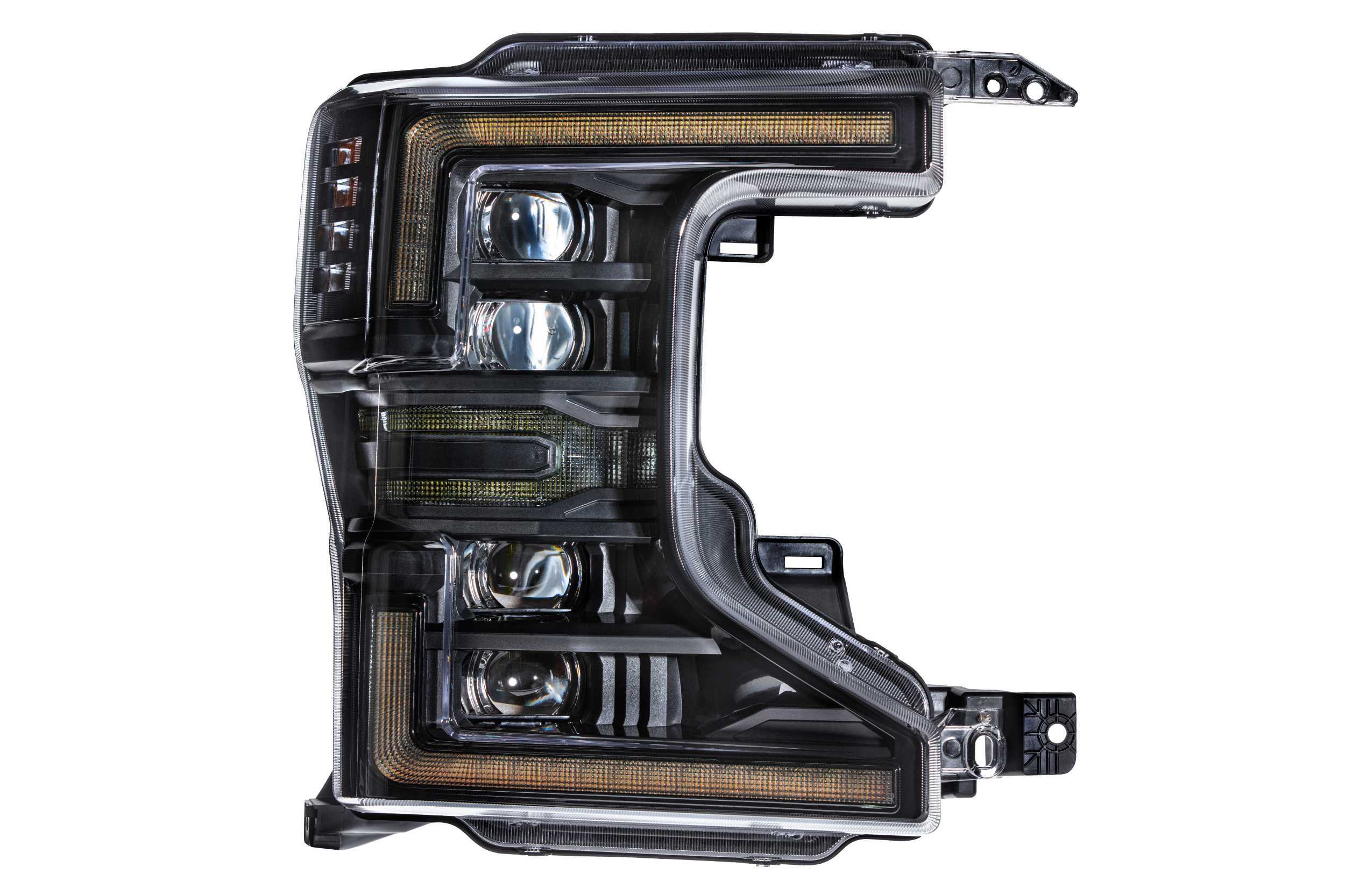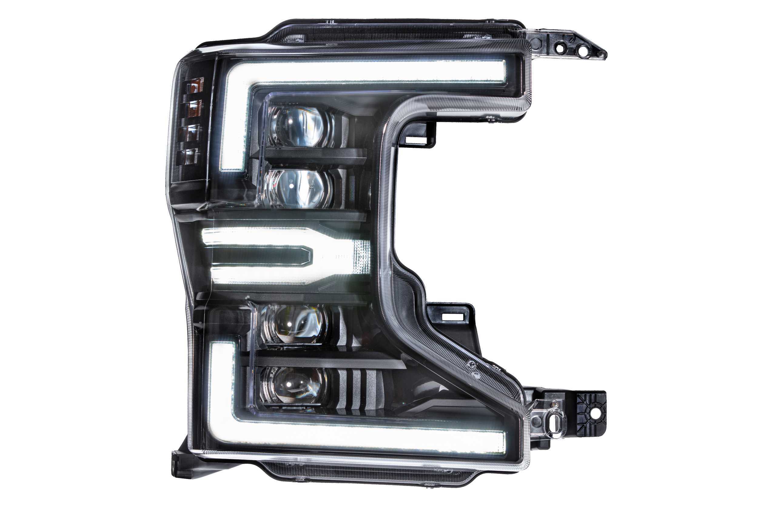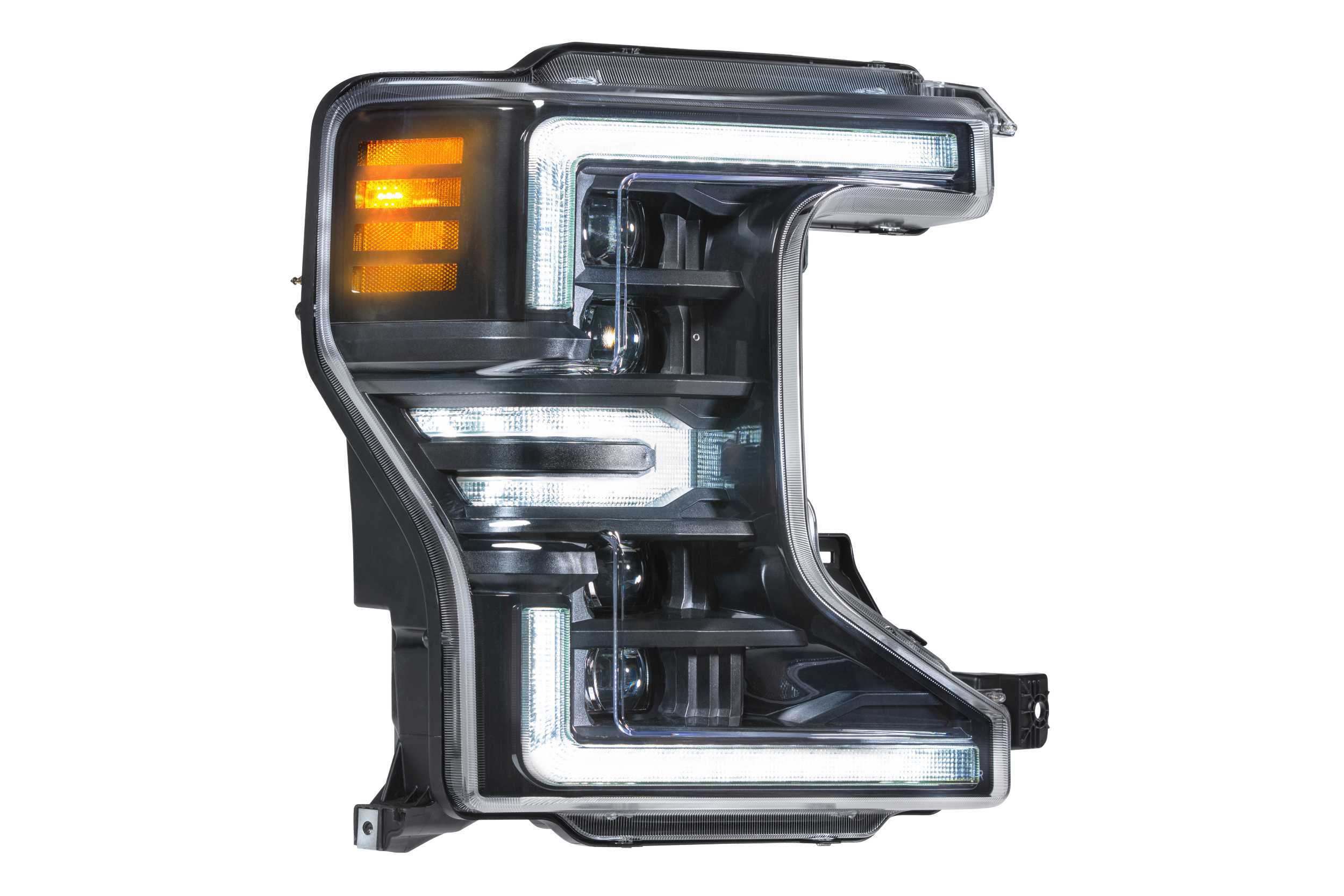 Game Changer: The game has just changed, again. If you've got a 2020 SuperDuty and you paid extra for the OEM LED headlights, well... hind sight hurts doesn't it? If you're thinking about buying one, the Morimoto XB LED headlights for the 2020+ Ford SuperDuty should be the first thing on your wish list. It's hard to imagine anything better than this when it comes to looks, performance, and functionality. They are the full package. Future Spec: Alright so where do we begin? Lets throw subjectivity out the door and talk about how great the 2020 SuperDuty LED headlights from Morimoto look. Although the overall shape isn't that much different compared to the previous gen trucks, the internals on these are crazy... but not over-done crazy... everything is just perfect. They could pass for the OEM LED headlights on 2030 model year Super Duty. Ultra modern, but not over the top. Daytime Running Lights: The daytime running light shares the same overall shape as the OEM LED headlights, but it's way brighter-- and has that cool Y-shaped optic in the middle. The same optics do double duty as the turn signals - which like other XB LED headlights from Morimoto feature the full sequential setup, but can be also be ran in an instant-on/off mode for folks who want something a little more conservative. Start up Sequence: When the daytime running light first kicks on, the projectors will illuminate in a two-stage sequence before turning back off. Forewarning: This is addicting... so you may find yourself wasting time out in the driveway starting the truck over and over again just to watch. Though that does absolutely nothing for performance, the guys at Morimoto have not overlooked the importance of light output. Unmatched Visibility: These use a new generation of advanced Bi-LED projectors that produce a ton of light output. You get four low beams per light, Yes, that's 8 low beam optics, two of which do double duty as the high beams (making 4 high beam projectors). These things completely blow away the OEM halogen headlights, and even out-perform the expensive OEM LED headlights by a good margin too. DOT Approved: All that goodness, and the Morimoto XB LED headlights for the new Ford Super Duty are still fully compliant. Their quad-projector optics meet & exceed all SAE, DOT, and FMVSS108 standards. The US market lights will be equipped with amber side markers as well. Plug and Play: The Installation is relatively easy too. These headlights are designed to work on your truck without any modifications. They will plug into the factory connectors and fit flush with all pre-existing mounting points. No error codes, no flickering, hyper-flashing, or radio interference. They can easily be removed and will not void your factory warranty. Note that at this time, these headlights will only work with trucks that came stock with the basic halogen headlights. They will not work on trucks with OE LED headlights.