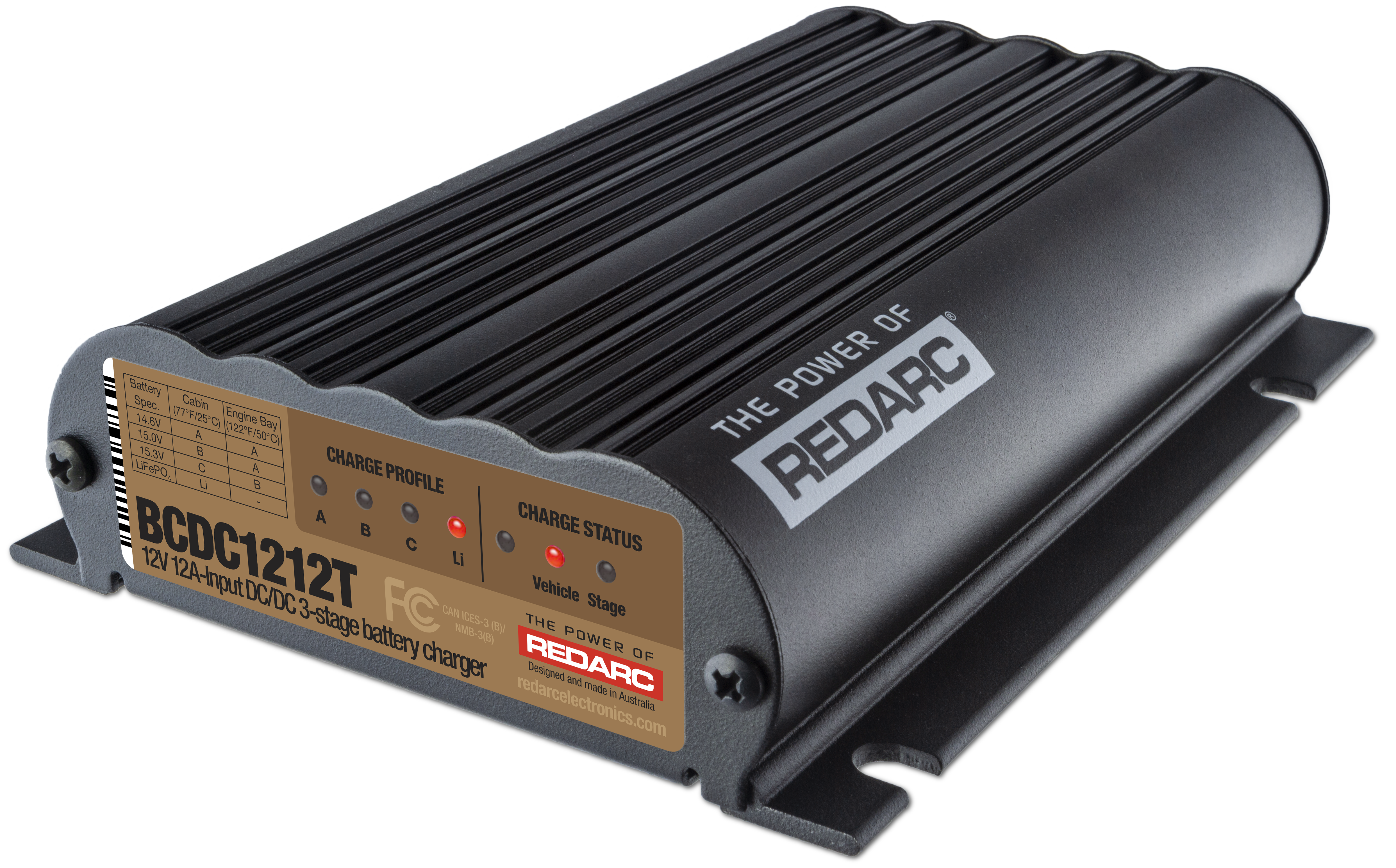 The BCDC1212T comes pre-wired with wiring harness allowing easy installation into any typical trailer battery setup, or other trailers where the secondary battery’s charging current is drawn from the 12V Auxiliary Power available on a pre-installed, suitably rated, trailer plug and towing harness.