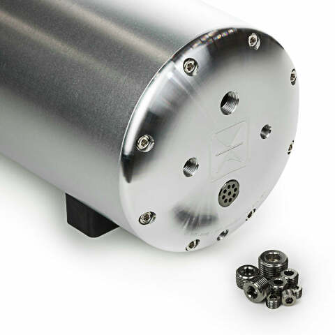 AccuAir's ENDO-Tank™ product line is the result of years of engineering accomplishments and represents the largest leap forward in air tank technology for 100 years. The system allows tanks to be built modularly with all precision machined aluminum components and with a bolted construction. As a result, these tanks are weld-free and leak-free. Ports are machined directly into the solid aluminum body and are flush with the outside of the tank. Modular construction allows the end-caps to be removed allowing for never before imagined feature combinations to go inside the tank. These tanks are offered in raw aluminum.