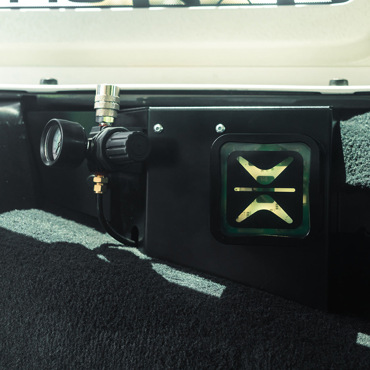 The AccuAir Air Suspension System for Jeep Wrangler JL Unlimited might very well be the most versatile suspension for the Jeep ever created. The AccuAir Air Suspension is a complete bolt-on system that is fully customizable to fit almost any need. This suspension will give you capabilities that no other system can. Do you want a suspension that can lower to stock level to get in and out of your garage with ease? Do you want a suspension that can be adjust to 5.5-inches of lift for off-roading? This is fully possible with the AccuAir system at the touch of a button. At the heart of the suspension is a 3-gallon underbody-mounted air tank with Viair compressor that is regulated onboard air to run the system, tire inflation and running tools.