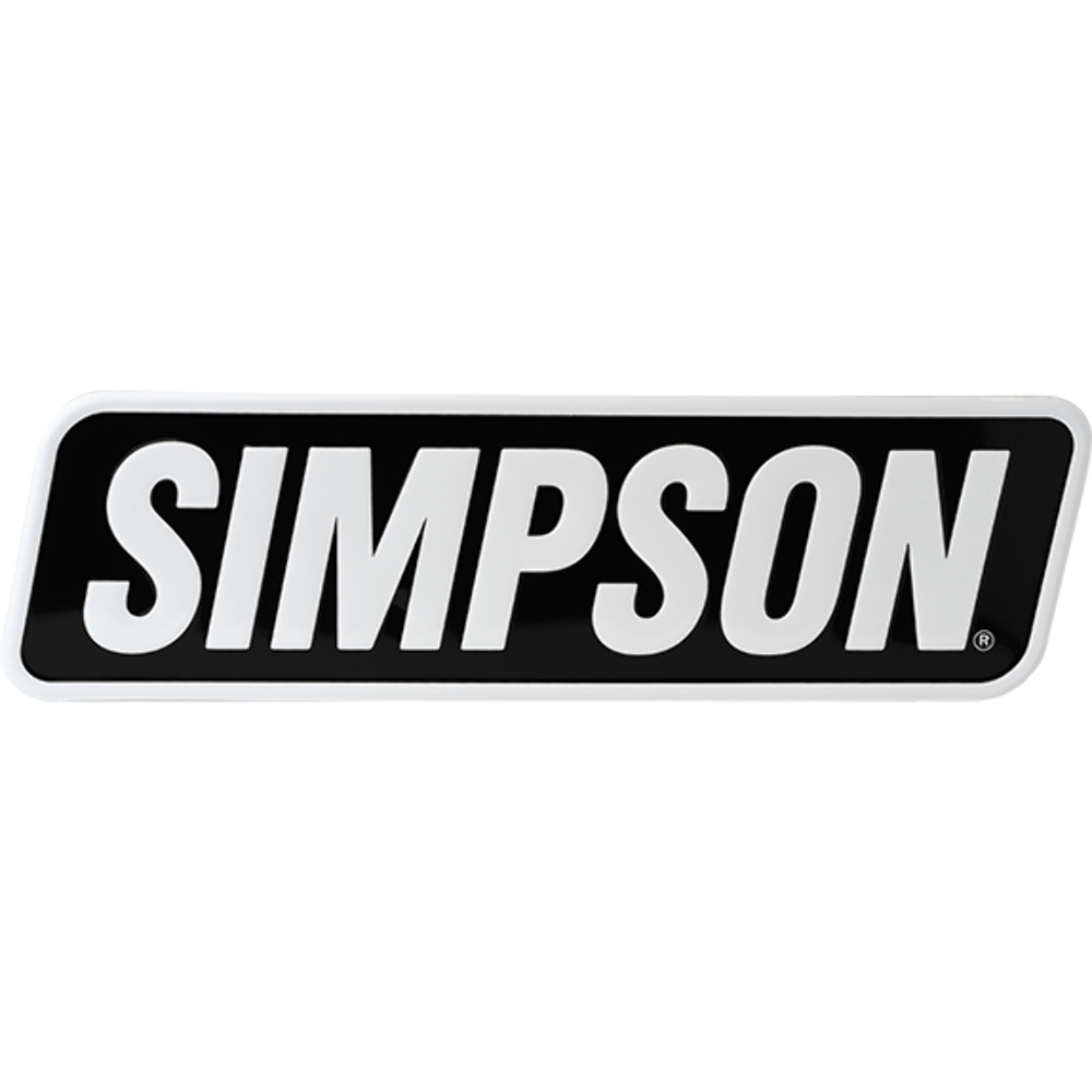 SIMPSON MOTO SIGN 6 X 18 BLACK Simpson Racing Embossed Aluminum Simpson Sign CLEARANCE ITEM / ALL SALES FINAL - Black / White Embossed metal Simpson logos for your garage or showroom. Protective film on the front, 100% coverage of foam adhesive tape on the rear Motorcycle version (black/white) or Automotive version (white/red) available Stamped Aluminum Construciton Embossed Simpson logo
