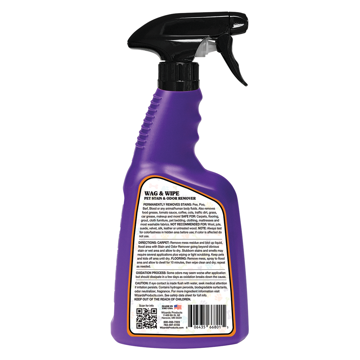 DIRECTIONS: CARPET: Remove the mess residue and blot up the liquid. Flood the area with Stain and Odor Remover, going beyond the obvious stain or wet area, and allow it to dry. Stubborn stains and smells may require several applications, including wiping or light scrubbing. Keep pets and kids off the area until dry. FLOORING: Remove mess, spray to flood area, and allow to dwell for 10 minutes, then wipe clean and dry; repeat as needed