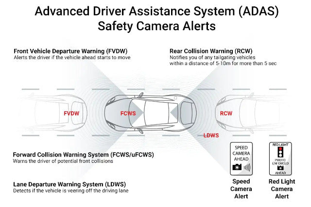 The Rear Collision Warning feature notifies you of any vehicles tailgating you for more than 5 sec within a distance of 5m to 10m and saves a recording separately under the ‘events’ folder.