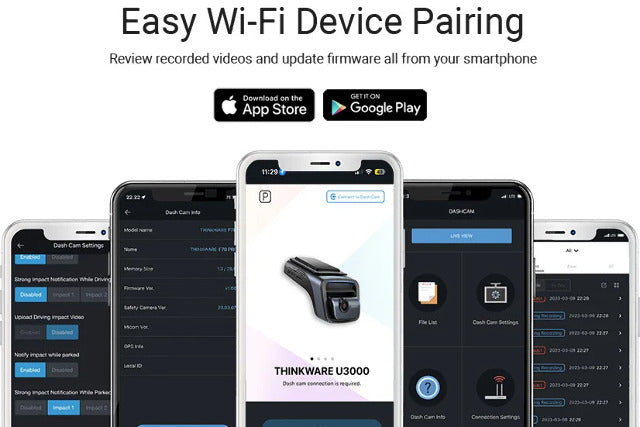Hassle-free dash cam pairing with your compatible Android or iOS device via the THINKWARE DASH CAM LINK App. Once paired, adjust your dash cam’s settings or replay and download your latest driving videos on the go.