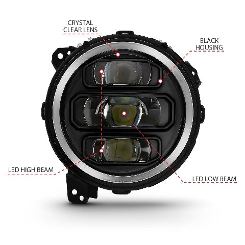 LED Projector Headlight; w/Plank Style Design; Black; Pair;