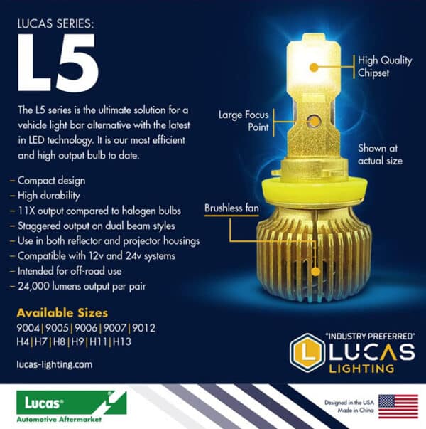L5-9005/9006 PAIR Single output. Replaces 9005/6/11/40/55,9140/5,9150/5,HB3/4,H10