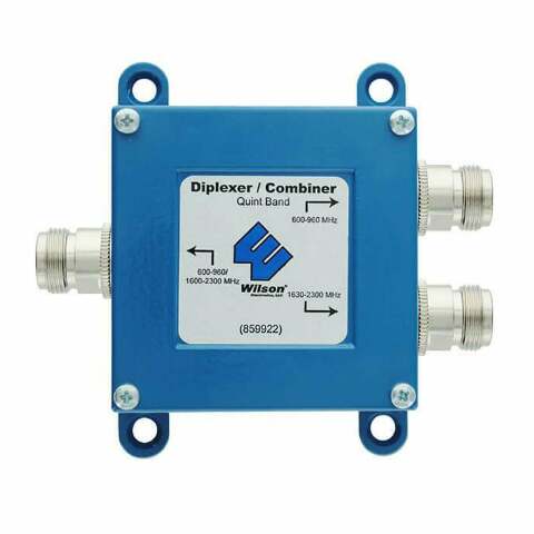 The Wilson 859922 Combiner/Diplexer is a coupler which allows you to either combine 800MHz/1900MHz into a single signal (or vice versa). It is most often used to combine signal from two single frequency amplifiers to be fed into a dual band amplifier. It can also be used to split signal from a dual band amplifier into 800MHz and 1900MHz components. This could be used if you have two areas with people on different cellular networks, although this is rare.